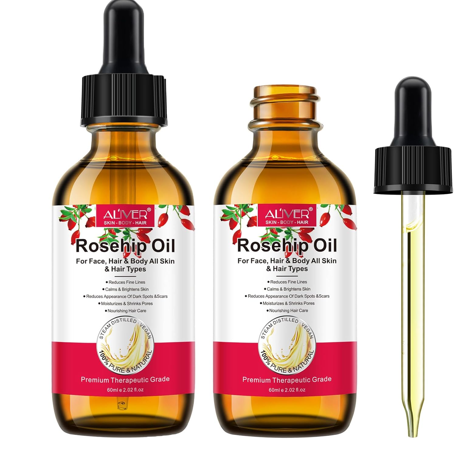Rosehip Oil for Face, Rose Hip Oil Organic Rosehip Seed Oil 100% Pure Cold Pressed for Anti-Aging, Nourishing Hair Care, Face & Skin (2.02 Fl Oz)