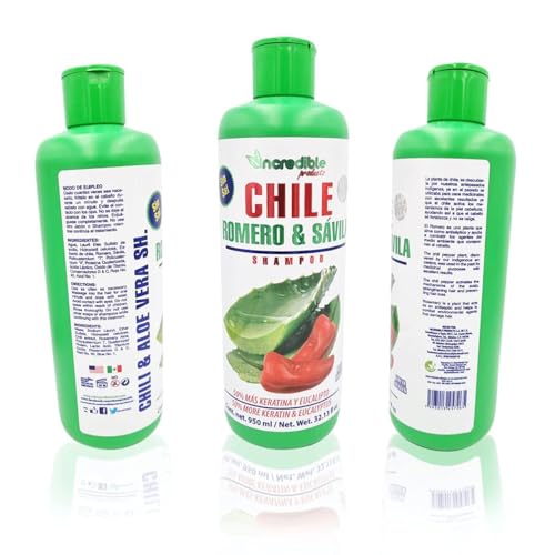 Chili, Rosemary & Aloe vera Shampoo NO SALT (Net Wt 32.13 fl oz) 50% more Keratin & eucalyptus, Shampoo de CHILE, ROMERO & SABILA.