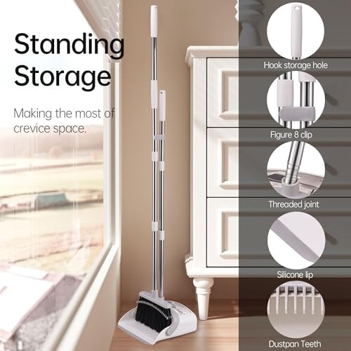 - 【Easy Assembly】Just need screw the extension poles into the hole and quickly complete the installation. And the dustpan can be stored upright and easily put into a narrow space to make the room tidier and save space, if you want to hang it for storage, this broom can also meet your requirements. Our OPTTIDI broom and dustpan set is to bring great convenience to your life.