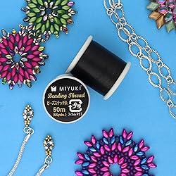 - Elevate your beadwork to new heights with Miyuki Bead Thread. Since the 1930s, Miyuki has set the gold standard in glass seed bead manufacturing, ensuring precision and consistency in every project. Crafted in Japan, these pre-waxed nylon threads feature a thickness of 0.2mm and are available in two convenient sizes to suit any project: a 50-meter (55-yard) spool for everyday creativity, and a generous 500-meter (545-yard) spool for larger, more ambitious designs. Ideal for delica beads, stringing, weaving, and a wide range of beadwork, Miyuki thread adds a refined finish and professional strength to your creations. The 50-meter spools are available in a stunning rainbow of colors—basic, bright, and primary tones—curated to inspire and enhance your designs with personality and flair. For foundational work and timeless looks, the 500-meter spools come in four essential and versatile shades: white, eggshell, silver, and black. If you’re a professional or just staring, Miyuki Bead Thread delivers the durability, flexibility, and precision needed for seed bead projects, loom weaving, and off-loom stitches like peyote or brick stitch. Explore complex techniques and bold designs with confidence—Miyuki Bead Thread is the perfect partner in bringing your creative visions to life.