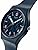 This watch has a transparent navy blue dial that gives a view of the movement and features light purple mixed indexes and a turquoise minute track, turquoise hour and minute hands with glow-in-the-dark effect and a coral seconds hand, all protected by biosourced glass. The matching matte navy blue biosourced case, strap, loop and buckle finish off the look.