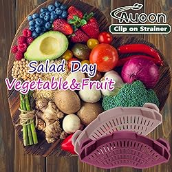 【Easy Operation & Fast Draining】Our AUOON Clip on Strainer is super easy to use. Just clip it into your pot, pan or bowl, and drain. It allows water to drain quickly and efficiently. Perfect for busy folks in the kitchen 【Multi-purpose Use】This strainer is a multifunctional kitchen gadget. It's perfect for draining pasta, filtering grease and ground beef, washing fruits and vegetables ect. Unlock more uses and see what you can do 【Food-Grade Silicone Material】Made from food - grade silicone, this colander is completely safe for your family. And the best part? It's dishwasher - safe, making cleaning quick and hassle - free 【Space-Saving and Portable】With its compact size, this small strainer is easy to store. And when you're heading out for a camping trip or using a caravan, it's easy to pack and easy to use. It's a must-have for both home and outdoor 【Perfect Gift Idea】This kitchen strainer is practical and useful, making it perfect for a special present for Mother's Day, Father's Day, Christmas, and more. Your friends and family will surely appreciate this handy kitchen helper