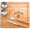 - [SET INCLUDES] This Jim Beam 2 Pack Steak Serving Set includes 2pc Steak Serving Boards, 2pc Forks, 2pc Knives, and 4pc Sauce Cups, providing everything you need for a complete steak serving experience.