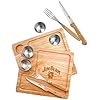 Jim Beam® 2 Pack Steak Serving Set - Durable Para-wood Serving Boards, Built-in Drip Grooves, Anti-Skid Feet, Service for Two, Includes Forks, Knives, and Sauce Cups, Board Size 10" x 9" x 0.4"