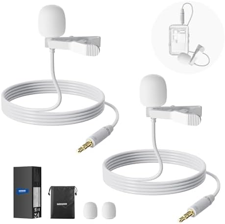 NEEWER 2 Pack Lavalier Lapel Microphone Compatible with Rode Wireless GO II 2 DJI Wireless Mic Transmitter, Omnidirectional Condenser Wired Clip On Lav Mic for Stage YouTube Live Streaming, CM5, White