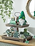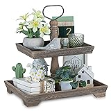 Timeless Farmhouse Elegance : The distressed brown finish of our 2-tiered tray serving stand adds a touch of timeless elegance to your home decor. It's the perfect backdrop for displaying cherished items, from cups to candles, plants to picture frames, and everything in between Versatile Celebration Hub : Our 2-tiered tray decor is the heart of every celebration. Whether it's Valentine's Day or Thanksgiving, this farmhouse tiered tray stand is your go-to for seasonal charm. It's the centerpiece that adapts to every festive mood, making your decor pop with rustic appeal Maximize Space, Enhance Aesthetics: The decorative tiered display stand's rectangular design is both space-efficient and aesthetically pleasing. It offers more room for your decor while taking up less counter space. This smart, farmhouse-style stand can hold up to 30% more, making it the perfect addition to any room Perfectly Sized for Display: With dimensions that allow for ample display space, our tray stand ensures that your decor items are the stars of the show. The bottom tray's 15.8"x 11.8" and the top tray's 11.8"x 8.7" prvide plenty of room, while the 15.8" height and 7" gap between trays accommodate even taller pieces DIY for Fun: these holiday tray decorations full of season themed atmosphere will add more points to your tray, and you can combine them into diverse styles on your own taste, to fully enjoy the fun of DIY, and enhance your aesthetics