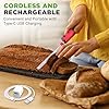 NutriChef Cordless Electric Knife | Easy to Use Constant ON/OFF Safety Function | Lightweight Kitchen Knife | Carve Turkey, Meats, Poultry, Bread & Cheese | 11.42’’ Stainless Steel Blades | Red