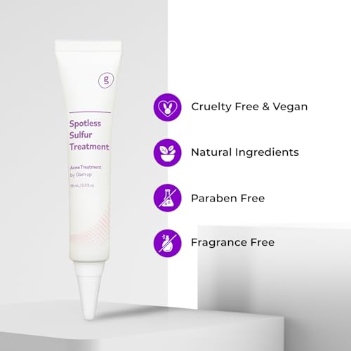 GLAM UP Spotless 10% Sulfur Treatment Spot Serum for Fast Healing Pimples, Blemishes and Acne Breakouts, Overnight Acne Soothing15mL, 0.5 fl. oz. [Made in the US]