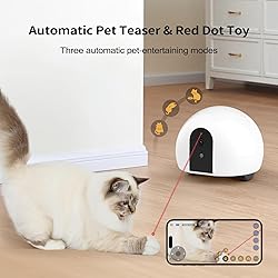 - Pet camera with treat tossing;movable 1080P full HD home pet camera robot provides you with real-time video streams to monitor your home and pets; listen and talk to family and pets with built-in 2 way talk;the combination of three pet-entertaining modes and the inbuilt red dot toy can far more effectively keep pets cheerful and help them get in shape;app remote control, night vision and self-charging features allows you guarding your home anytime, anywhere
