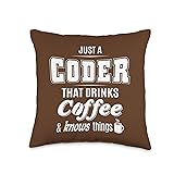 - Just A Coder That Drinks Coffee and Knows Things is perfect for someone who writes code and needs that hit of caffeine. For fresh brewed coffee lovers and iced coffee drinkers alike. Great for birthdays and Christmas for a coffee drinkers, coffee lovers, and caffeine addicts. This Just A Coder Coding Funny Coffee Drinker Lover Gifts item is designed by JMB Coffee and Tees.
