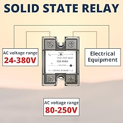 - This product is a single-phase SSR-25AA solid state relay, using AC to AC design, support 80-280VDC input and 24-480VDC, 25A output, with its compact size (48mm33mm61mm), lightweight (90g) and simple installation characteristics, easily integrated into various applications. Its significant advantage lies in the precise control of the heating components, achieving efficient temperature regulation and constant temperature control, and improving the system efficiency and comfort. Photoelectric coupling technology is adopted to ensure the electrical isolation between input and output, and enhance the system safety and stability.