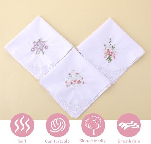 Ladies Cotton Handkerchiefs Flower Embroidered with Lace Ladies' Vintage Floral Lace Handkerchiefs for Wedding Party (6 Pack)