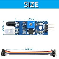 IR sensor:Compatible with for Arduino Smart Car Robot Size:32*14mm Voltage:3.3-5V Distance range:2-30cm Commodities include:10Pcs Photoelectric reflection sensor;10Pcs Male and Female Dupont Cable