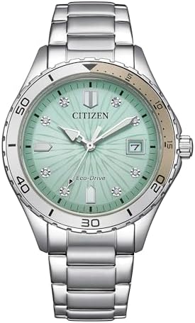 Citizen Women's Eco-Drive Crystal Weekender Sport Casual, Silver-Tone Stainless Steel Bracelet Watch, Light Blue Dial (Model: FE6170-88L)