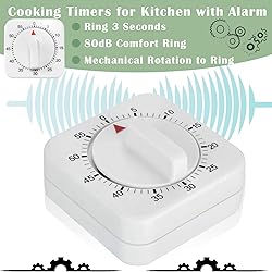 60 Minute Mechanical Timer with Loud Alarm - Wind Up Cooking Timer, No Batteries Required, Ideal for Classroom, Study, Cooking