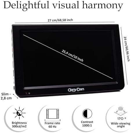 10 inch Portable TV, Widescreen Monitor for Bus/Truck/Car, Adapter 12/24/110 Volt, ATSC/Analog, HDMI/USB/AV Input, Supports 1TB HDD