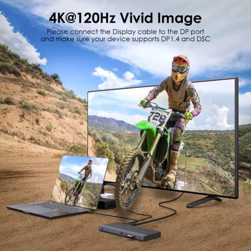 - Dual Monitor or Triple Display: Equipped with dual DP and one HDMI port,Single DP can up to 4K@120Hz under DP1.4 source. Resolution will be 4K@60Hz if two monitors play simultaneously.Connect up to three monitors simultaneously.it perfect for expanding multiple displays for meetings, presentations, stock chart analysis, programming, and more.(Pls Not: Please make sure that the USB-C port on the host laptop supports video output)