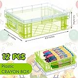 - Features: Translucent design: You can view the contents of the crayon organizer with ease thanks to the clear lids, which make it easy to locate your items. Easy to carry: The large capacity makes it possible to keep little, easily identifiable items. These crayon boxes bulk are lightweight and convenient to transport when traveling. Specifications: Material: plastic Color: yellow Size: about 4.8 x 3.4 x 1.6 inches/ 12.3 x 8.6 x 4.2 cm Package includes: 12 x Stackable crayon boxes Notes: Manual measurement, please allow slight errors on size. The color may exist a slight difference due to different screen displays.