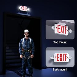✔【UL Listed & Long Lasting 6pcs Leds Total 】The Exit Sign approved by UL 924 certificate and comply with commercial grade.UL-94V-0 Flame-retardant.The emergency exit sign has 6pcs Long lasting, efficient ultra bright SMD LED can light up every area in a state of power failure. SASELUX Exit Sign work for 50,000 hours lifespan at least and visible from up to 100 feet away.Includes Charge rate/power "ON" LED indicator light and push to test button. ✔【Universal Mounting】 Two fully adjustable Emergency Light heads allow to be pointed in any direction needed, It could be ceiling mount,and wall mount, all the mounting hardware and Universal mounting canopy included in the package. Fully assembled single-face exit comes with an extra faceplate for optional double sided use. All configurations include field-selectable directional arrows, knock-out chevrons for customized egress signage. You can choose between a single or double-sided display according to building's unique layout and emergency egress requirements. ✔【Durable Backup】The double sided emergency exit sign built-in high-density 3.6V long life Nickel cadmium backup battery provides more than 90 minutes of emergency operation during a power outage. Battery is included in the box,maximum 24 hours for full recharge time. Suitable for damp location in 0℃-40℃(32°F-104°F) Specifications: 120V/277V universal voltage,Adjustable Lamp Heads, backup battery,test switch and indicator. ✔【Wide Application】 The LED Emergency EXIT Sign Combo is widely used for engineering, commercial, residential, and industrial lighting applications.The low profile design is ideal for hallways, hospitals, apartments, churches, shopping malls, schools, hotels, offices, buildings, warehouses, supermarkets, doorways and isles, etc. ✔【Ensured Quality & Service】 All SASELUX led emergency exit lights covered by worry-free MONEY-BACK & WARRANTY policy which support 5years for electrical boards and housing with professional after-sales service.