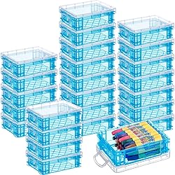 Suzile 25 Pcs Plastic Crayon Boxes with Snap Lids Crayon Storage Organizer Stackable Container Bulk Pencil Case for Pen Crafts Classroom Supplies(Blue)