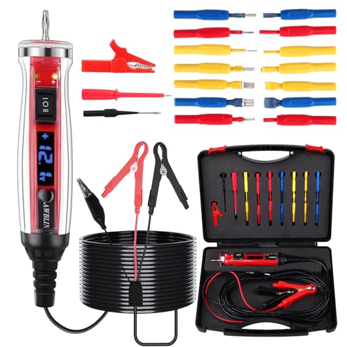 Power Circuit Probe Tester Kit, LCD Digital Automotive Test Light with Voltmeter, 18PCS Multi Function Auto Fuse Circuit Voltage Continuity Current Electric Tests Tool with Black Carrying Case