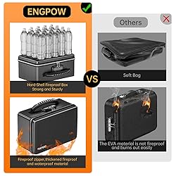 Advanced Fireproof Protection: The ENGPOW fireproof document box is constructed with multiple layers of thickened fireproof insulation material that together can withstand temperatures up to 6400°F, featuring a special insulation design, fireproof zipper, and fireproof stitching. Tested in simulated fire conditions, it ensures complete protection for your documents and valuables, preventing carbonization and damage. Trust ENGPOW for ultimate fire safety Superior Fireproof Design: Unlike standard fireproof boxes, ENGPOW Fireproof money boxes uses multi-layer thickened fireproof materials, upgraded fireproof zippers, and threads to fully isolate flames. Built with reinforced, high-grade fireproof materials, our fireproof box offers superior resistance to extreme heat and flames. Certified by SGS (UL94 VTM-0), this box offers comprehensive protection. Its lightweight design makes it easier to carry than traditional fireproof safes, ensuring quick access in emergencies Spacious & Organized Storage: Fireproof Storage Box - With an external size of 11 x 7.3 x 5.5 inches (Internal dimensions: 10 x 6.3 x 4 inches) and a removable multi-layer design, this fireproof box meets all your storage needs. It includes 5 small mesh bags, 2 large mesh bags, 5 card slots, and a main compartment, perfect for organizing cash, golds, jewelry, passports, A5 documents, credit cards ,u disks other valuables Secure Combination Lock: ENGPOW Small Fireproof Box equipped with a high-quality combination lock and a professional fireproof zipper, the ENGPOW fireproof box ensures maximum security for your valuables. Its sturdy handle allows for easy transport, making it ideal for home, office, car, or outdoor activities like camping and travel Lifetime Replacement Guarantee: ENGPOW stands by the quality of our fireproof boxes with a lifetime after-fire replacement guarantee. We are committed to providing the best protection for your important documents and valuables. If any issues arise, our dedicated customer service team is ready to assist you promptly