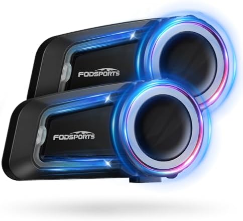 Fodsports FX7 10 Riders Mesh Motorcycle Bluetooth Headset, Dual Chips V5.4 Helmet Bluetooth Headset with Audio Multitasking, Music Share, Motorcycle Intercom with CVC & ENC Noise Reduction, FM, 2 Pack
