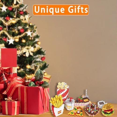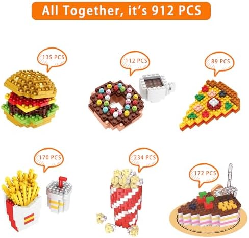 - 🍰【CREATIVE HOME DECORATION】The micro blocks kit food is creatively designed by the designer, The assembled food can be placed in every corner of the room as decorations to make your home more warm and vibrant. Note: the mini building blocks will be much smaller than the normal building blocks. Please read the size carefully before making the decision. The quantity of each set block is around 130-250 pieces. Food model size: 10.6inX6.8inX11.4in (not compatible with LEGO blocks).