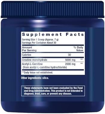Life Extension Creatine Acetyl-L-Carnitine Energy Plus, Energy Support Supplement, creatine monohydrate, Acetyl-L-carnitine, Gluten-Free, Non-GMO, Vegetarian, 30 Servings