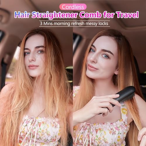 - 200 Million Negative Ions Hair Care: The hair brush straightener releases 200 million-level negative ions that neutralize the positive ions in your hair, reducing static, eliminating frizz, and leaving your hair smooth and healthy. The cordless portable design makes it easy to style your hair on the go, whether at home or traveling, you enjoy perfectly styled hair without the static and frizz that traditional styling tools often cause