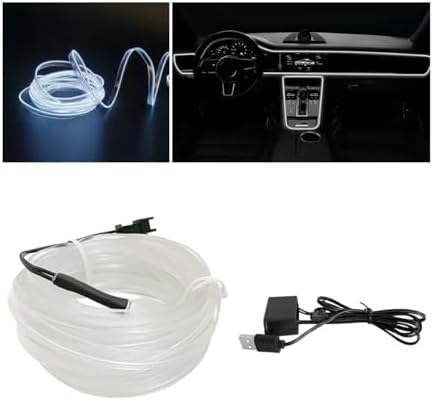 EL Wire Car Interior LED Strips Lights, 16FT 5V USB Auto Neon Light Strip, Electroluminescent Vehicle Interior Ambient Lighting Decor Accessories, Universal for RV, SUV, Truck (White)