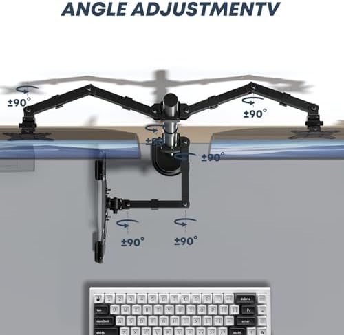 - 【Adjustment Range】The dual monitor stand with laptop holder has a wide range of activities,supports 360°rotate, ±45°tilt, ±90°swivel.31.6 inch(803mm) extra tall pole is convenient for you to adjust the height. Provide you with the ideal viewing angle for maximum comfort.