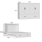 [Space-Saving & Ample Storage Space] - When not in use, it can be put away as a cabinet in your bedroom, guest room, or office, which doesn't take up much space and looks very neat. The top part can store a folded mattress and the bottom part has an oversized drawer for bedding, making it easy to use instantly. NOTE: This product does not include mattresses [Stylish & Functional] - When used as a cabinet, the white color with classic patterns and black handles makes it clean and elegant, can be blended into a variety of interior styles. And it can quickly provide you with convenience when guests need to stay over or use it temporarily [2 Nightstands] - The full size murphy bed comes with 2 nightstands for easy use. Spacious top provides easy access to lamps, magazines, books, cell phones and other items. And the top is free to display your photos, small plants and other ornaments [Quality Material & Stuedy Structure] - This 2-in-1 foldable bed cabinet is made of high-density particle board and MDF, make it firm and stable. The surface is smooth finished, is scratch-resistant and easy to clean with a damp cloth [Easy to Assemble] - The installation product manual is very detailed, each step is illustrated, and each part is numbered or labeled, so all you have to do is follow the instructions. You can also enjoy the assembly process with a sense of accomplishment. NOTE: this murphy bed will come in 2 boxes separately