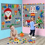 MIMAX Customize Building Block Wall, 470+ PCS Activity Wall Mount Toys Bricks with Self Adhesive Baseplate 8PCS (20"x10") for All Major Brands, Art Build On Table Wall, Gray