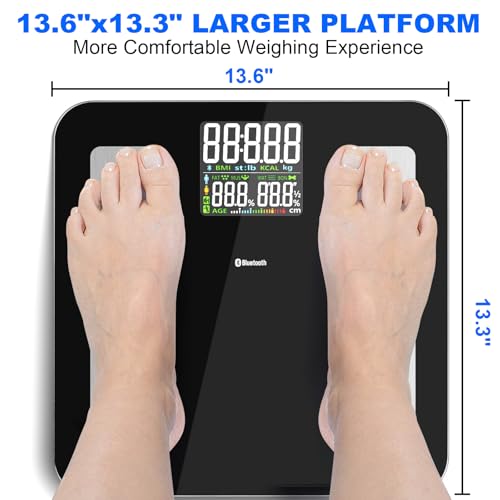 - Integrated Display:Boasts a large VA colorful display screen that presents 5 essential body metrics without the need for your phone. In just 15 seconds, the screen simultaneously displays your weight, Body Fat ,Water, Muscle and Bone percentage, allowing you to quickly assess your basic health status at a glance, hands-free.