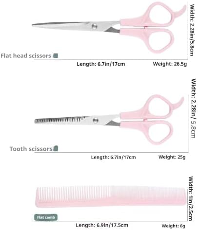 Hair Cutting Shears Set with Professional 6.7inch hair cutting Shear, hair thinning scissor and comb(pink). Stainless Steel hair scissors, Barber Thinning Scissors, and Comb Kit for Women/Men/Kids.
