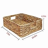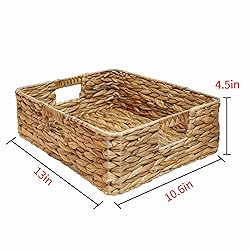 Rectangular Water Hyacinth Storage Baskets, Wicker Storage Baskets for Shelves, Square Shallow Basket, Woven Drawer Basket With Handle, 13” L x 10.6” W x 4.5” H