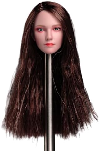 1/6 Scale Female Head Sculpt, Beauty Girl Long Brown Hair Head Carved for 12inch Female Action Figure Body