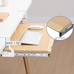 Smooth Gliding Tracks - Retractable smooth sliding rail design allows the desk drawer to glide smoothly forward and backward. It encourages you to keep your arms and wrists in a neutral position and aids in the prevention of injuries caused by poor posture. Simply slide the tray under your desk when not in use and quickly pull it out when you need more space. Ergonomic Typing Angles - Enjoy comfortable typing angles that reduce stress on your wrists and shoulders with the ETHU tray, which extends a maximum of 8.07” from the edge of your desk.THERMOFORMING helps protect the tray surface from scratch, an ideal packaging solution that can help maintain your keyboard tray integrity. Maximize Desk Space & 3 Drawers - The ETHU keyboard tray is designed to save desk space with its 26.77” (31.18" with clamps) x 12.2” size, allowing you to fit your keyboard, mouse, and small accessories beneath your desktop. Underneath the keyboard, 3 drawer storage adds valuable extra workspace for your phone and other items C Clamp design - You won't have to worry about damaging your desk. easily mounted to desks up to 1.96in thick, It is a compact, lightweight, scratch-resistant that can hold most keyboards and mice weighing up to 22lb. Easy Assembly - Designed with easy clamp-on installation, the ETHU tray has all necessary hardware and instructions provided for seamless assembly, and can hold weights up to 22 lbs.