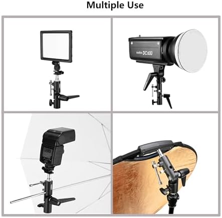 Camera Flash Bracket with Cold Shoe Mount, Solid Metal Material, Adjustable Speedlite Swivel Light Stand Bracket with Umbrella Holder,1/4 to 3/8 Adapter Screw for Flashes Studio LED Lights
