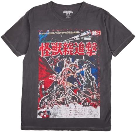 Unleash your inner kaiju fan with this men's black Godzilla crew neck Short Sleeve t-shirt. Featuring an oversized poster graphic of Godzilla facing off against Gigan under bold red kanji, this shirt is crafted from 100% cotton for ultimate comfort and breathability. Ideal for casual wear, it's easy to maintain with straightforward machine wash and tumble dry instructions. Show off your love for the Godzilla universe with this comfy t-shirt.