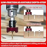 【Specifications】 - KEENTECH countersink drill bit set, 3/8" dia x 1/8" drill diameter x 1/4" shank, 82 degrees, including a carbide-tipped countersink bit, M2 steel drill core with gold coating, free-spinning low-friction depth stop, and an anti-slip 1/4" quick-release hex shank, suitable for bench drills and hand drills.This countersink drill is suitable for screw sizes #6, #7, #8, #9, #10. 【Adjustable Depth-Stop & Ball bearing for fine finish】 - The KEENTECH countersink's adjustable depth stop can easily handle both shallow holes for flush screws and deeper holes to hide screws. The design maintains uniform depth for consistent drilling, preventing variations from pressure changes. The countersink drill bit with depth stop features a ball bearing that prevents scratches and burns, ensuring a flawless, scratch-free finish every time, eliminating the need for secondary polishing. 【Carbide-Tipped Blades】 - The adjustable counter sink set 3/8" dia features carbide blades, capable of drilling approximately 30,000 holes in solid wood (recommended RPM around 3,500). The center drill bit is made of M2 steel, coated with a golden finish for enhanced wear resistance, offering a lifespan 5 times longer than other drill bit set for wood. 【Depth Control Design】 - Drilling depth can be adjusted as needed to ensure satisfactory holes. The drill bits enable positioning and adjustment of drilling depth without removing the depth stop, allowing for quick bit changes. 【Ideal for Woodworker】 - Our countersink bits is ideal for wood projects, designed for creating pet houses, cabinets, porch swings, bed frames, and more. Our carbide countersink bit easily pre-drills holes in softwood, hardwood, solid wood, plywood, MDF, chipboard, as well as plastics and aluminum, ensuring secure screw installation. 【Reliable Warranty】- The countersink bits for wood come with a warranty to ensure worry-free use. If any product-related issues arise during the warranty period, we will provide warranty services. We are committed to delivering high-quality tools and excellent customer support. If you have any questions, please feel free to contact our after-sales team.