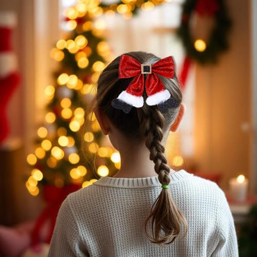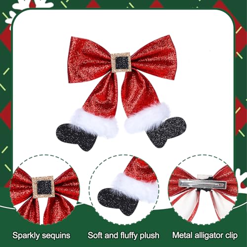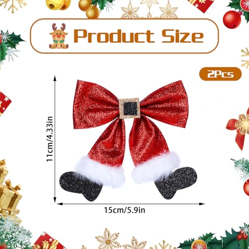 2 Pcs Christmas Hair Clips, Glitter Christmas Hair Bows Cute Bows Barrettes Red Bows Hairpins Christmas Hair Accessories for Girls Women Costume Accessory Xmas Party Gifts