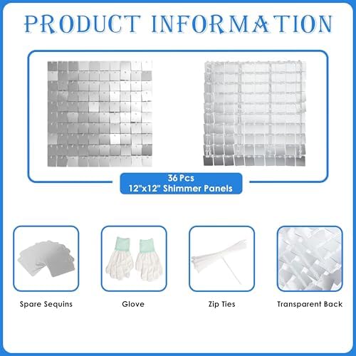 - Package Includes: Each box comes with 36 pieces 12"x12" sequin panels and matching assembly materials, including gloves, zip ties,spare sequin pieces,installation tools, disassembly tools and instruction manual.