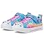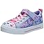 Take to the skies in magical style wearing Skechers Twinkle Toes®: Twinkle Sparks - Ombre Flutter. This glittery lighted design features a rainbow print synthetic upper with butterflies, stretch laces, adjustable instep strap, and a butterfly embellished toe cap.