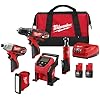 Milwaukee 2494-25 M12 5-Tool Combo Kit - Drill, Driver, Ratchet, Inflator, Light, (2) 2.0ah batteries, charger, and Tool Bag