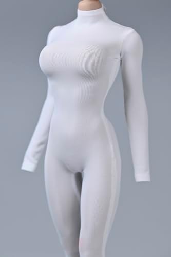 Fremego 1/6 Scale Female Clothes,Female Tight Bodysuit Long Sleeved Jumpsuit Bottom Coat Clothing for 12inch PH TBL JO Action Figure (White)