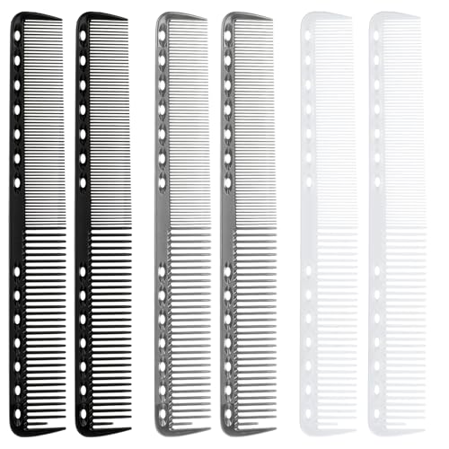 6Pcs Cutting Combs for Hair Stylist Professional Carbon Fine Cutting Comb Heat Resistant Carbon Fiber Salon Hairdressing Comb for Men(Black, Grey, White)