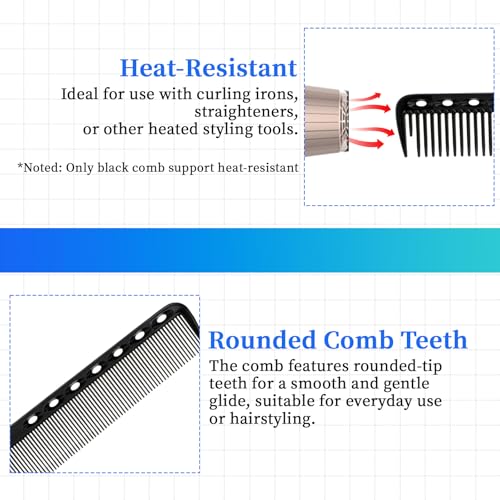 - 【Heat Resistance】Carbon combs are designed for professional barbershops. These carbon fiber haircutting combs have superior heat resistance and can be safely used with hair dryers and other heat styling tools. The heat resistant comb not only improves work efficiency, but also greatly enhances the ability to handle the details of styling. It is an ideal supplement for any barbershop or hair salon.