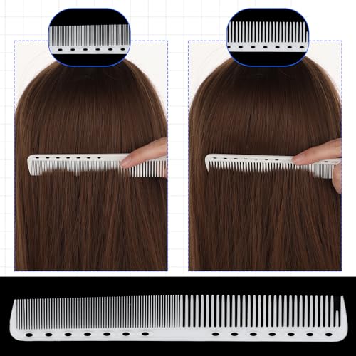 - 【Package List】Contains 6 pieces of carbon fiber haircutting combs, combs for men are carefully designed with 14 measuring holes, which not only improves the grip of hair, but also makes each styling more precise. These innovatively designed barber combs professional, with a unique half-length first tooth, are specially designed for picking and splitting hair, allowing you to handle complex hairstyles with ease.